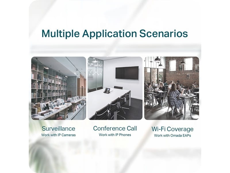 - do 250 m zasięgu transmisji danych i zasilania w trybie Extend (prędkość na portach w trybie extend wynosi do 10 Mb/s. rzeczywisty dystans transmisji może różnić się od podanej wartości, w zależności od jakości używanych przewodów i zastosowanych kamer)