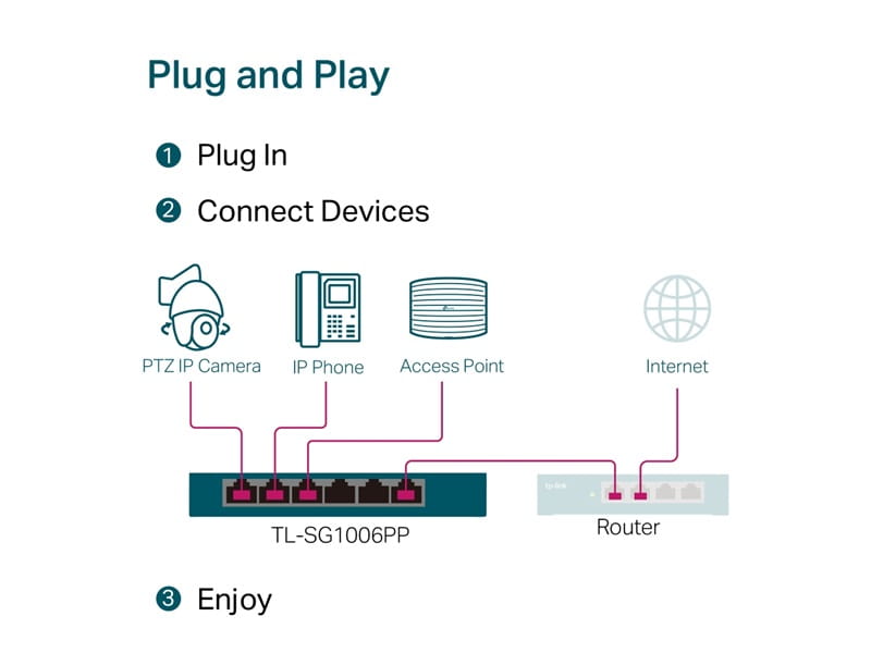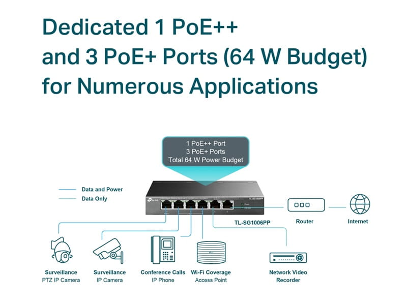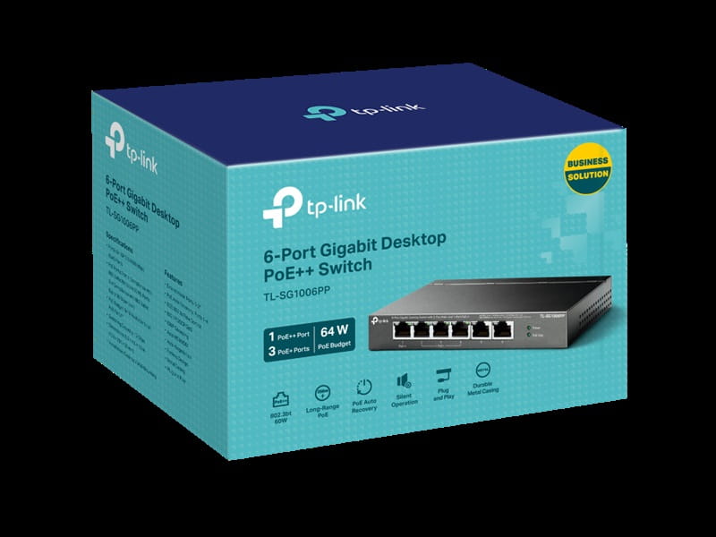 TL-SG1006PP Switch PoE++/+ 1 port 1000M PoE bt + 3 porty 1000M PoE + 2 porty 1000M